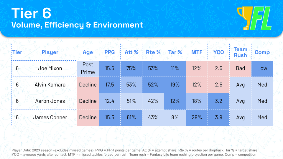 Tier 6 – Aging former RB1s projected to lead their backfields