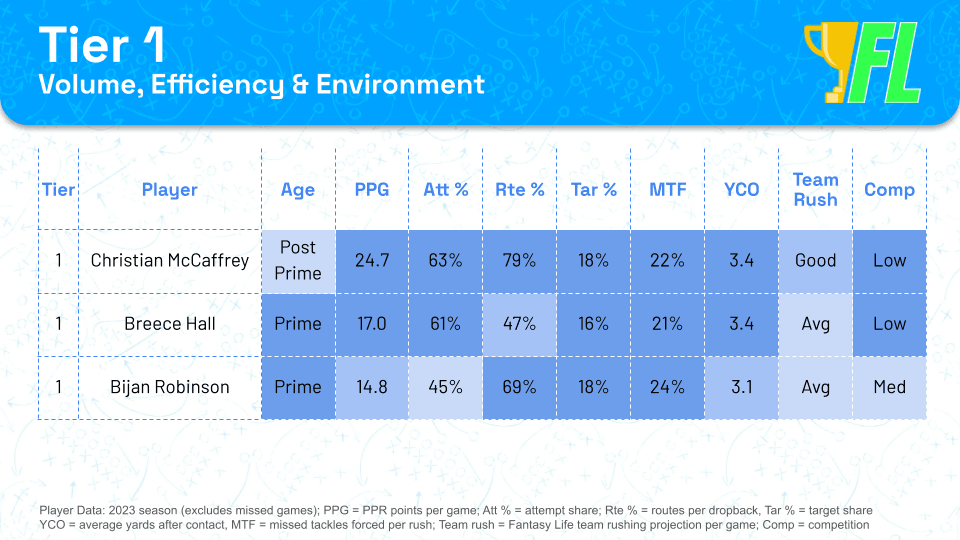 Tier 1 – Prime and efficient every-down backs