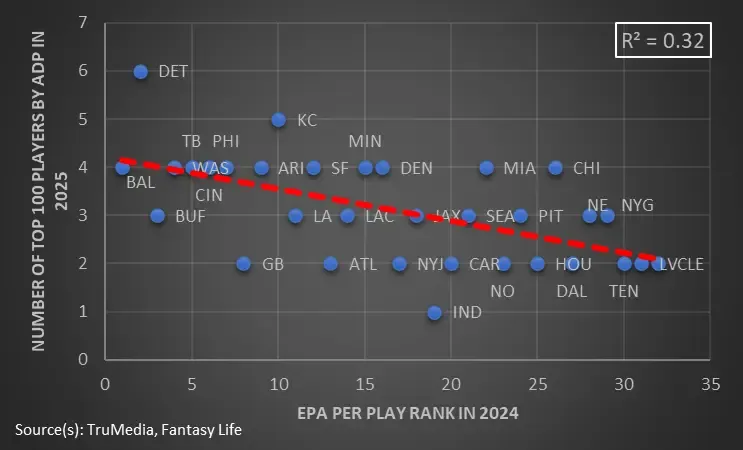 As a result, through an understanding of EPA, we can buck the trend and get ahead of our leaguemates by investing in a team with the potential to outperform in 2025.
