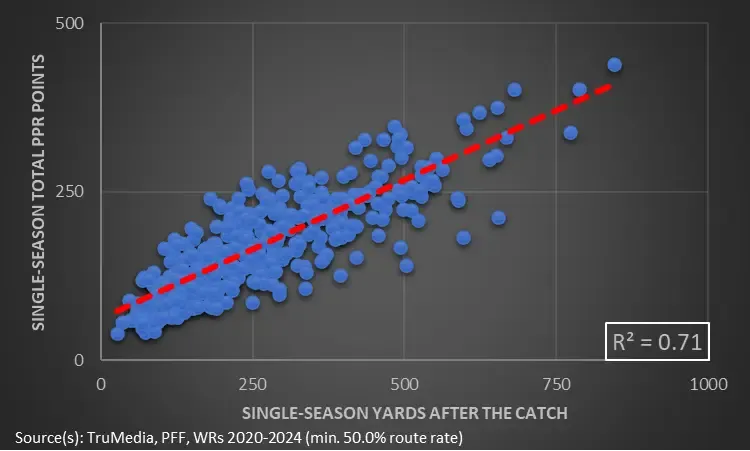 Chris Allen breaks down yards after the catch (YAC) and how we can leverage the pass-catching stat for fantasy football in 2025.