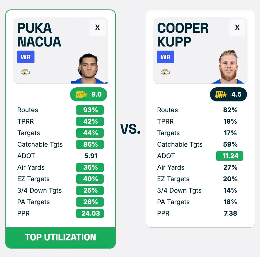Check out Weeks 14-18 vs. Cooper Kupp in Dwain’s Utilization Report: