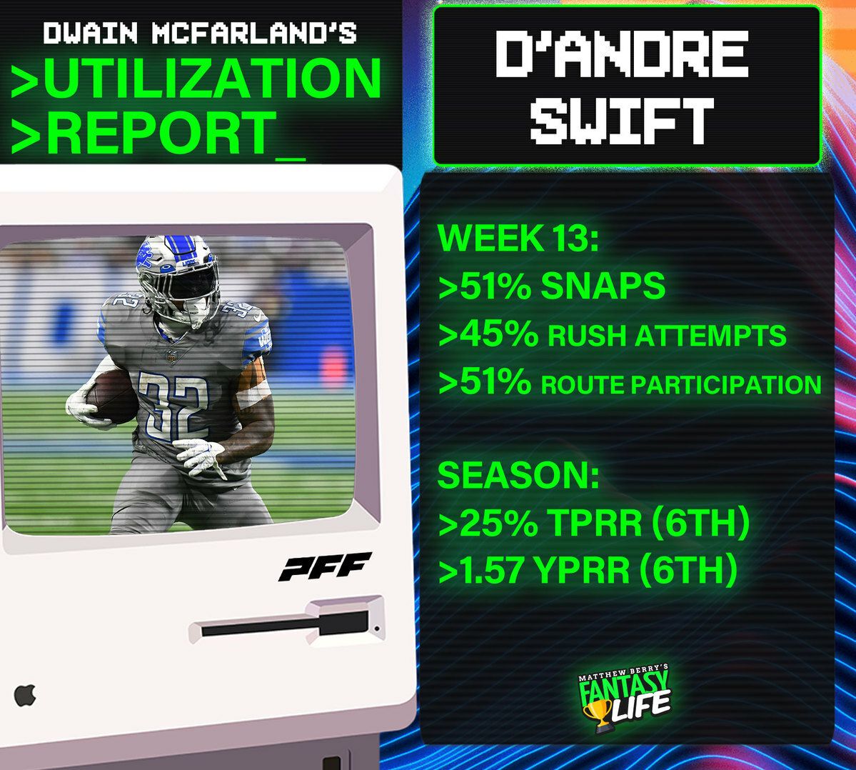 Volume is king inĀ fantasy football and sports betting, and this report will help you understand which players are due more or less according to their roles. Each week,Ā DwainĀ dives deep into the data, so you don't have to.