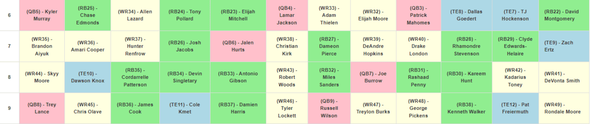 - Punt TEs (Rounds 12-13): If you miss out on an elite TE, be ready to grab a couple in this range where exciting names like Gerald Everett, David Njoku, and Hunter Henry all go off the board.