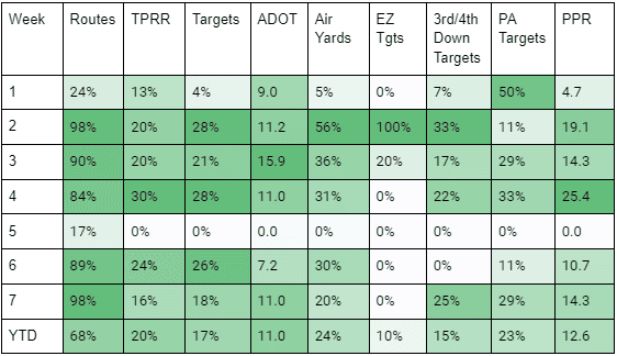 Historically, Aiyuk has not been good against the Rams, garnering a 16% target rate. However, the 49ers wonāt have Deebo Samuel.
