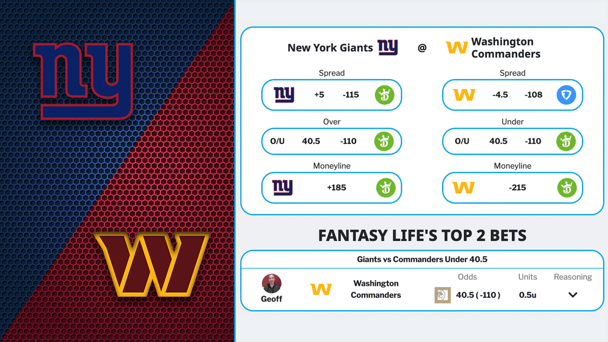 💰 Giants vs. Commanders Under 40.5 Total Points