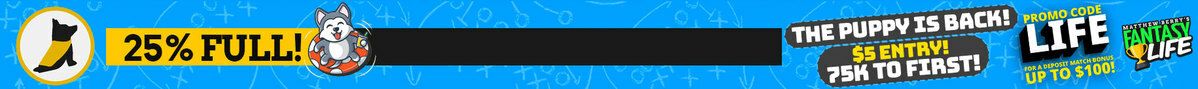 Luckily Underdog Fantasy is matching deposits up to $100 for Fantasy Life readers who use promo code LIFE. I did the math for you and that is 20 free Puppy drafts. Just don't snipe me, please.