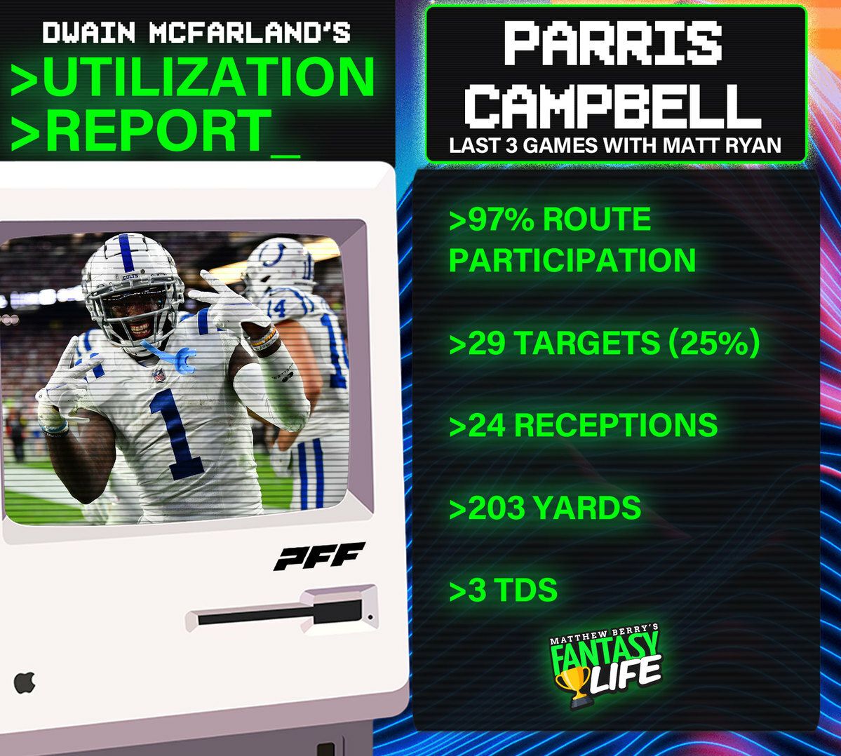 Over the last three games with Ryan, Campbell averaged 20.8 fantasy points andĀ looked more like the athlete Indianapolis selected in the second round of the 2019 NFL Draft.