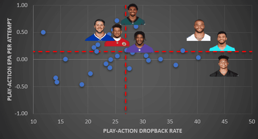 - It protects him from trailing game scripts or scenarios when the team struggles on first and second down, leading to more long-down-distance situations.
