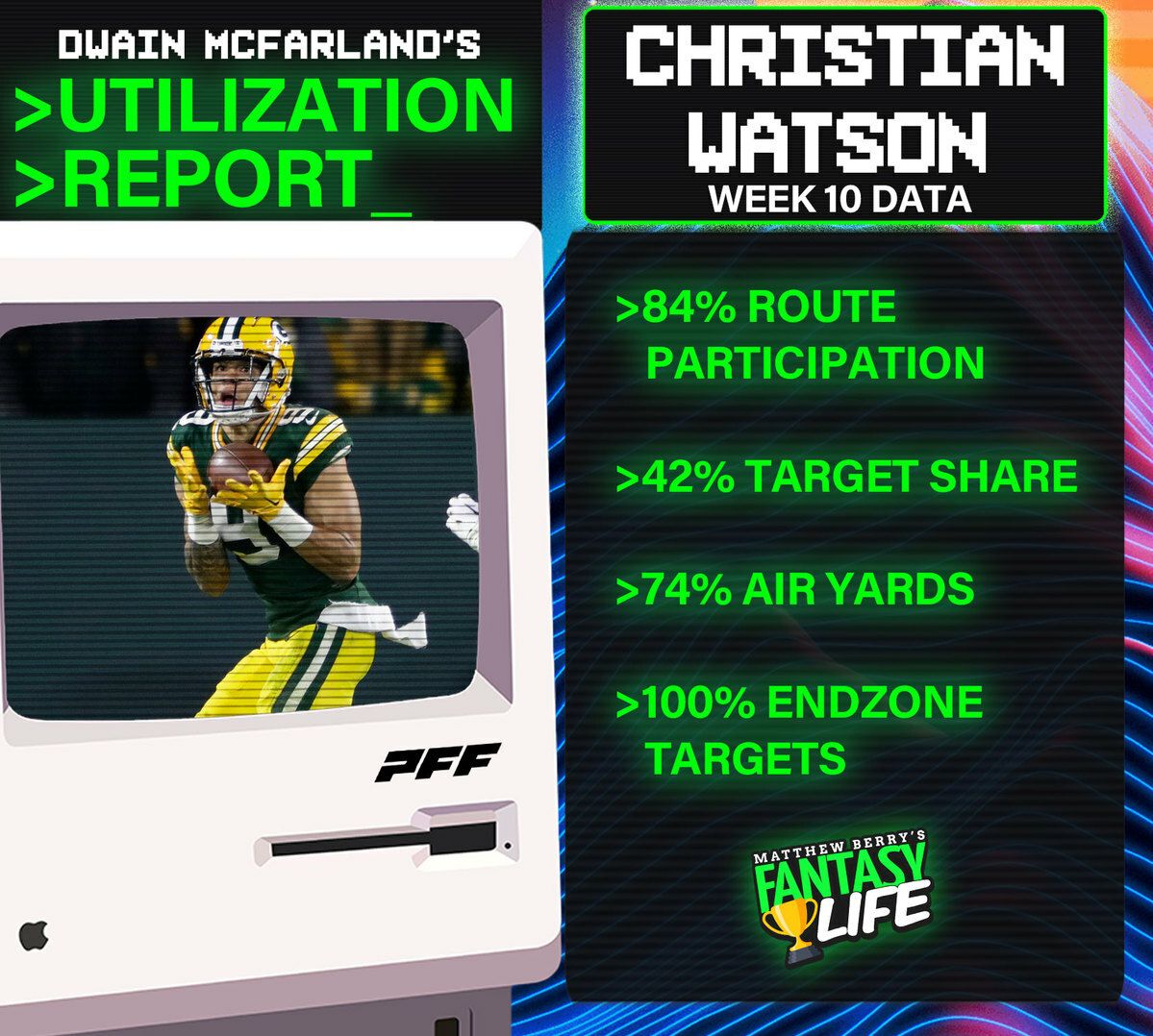 Watson had only played on 17% of the Packersā passing plays coming into Week 10, battling a litany of injuries that started with a knee issue that landed him on the PUP in camp.Ā