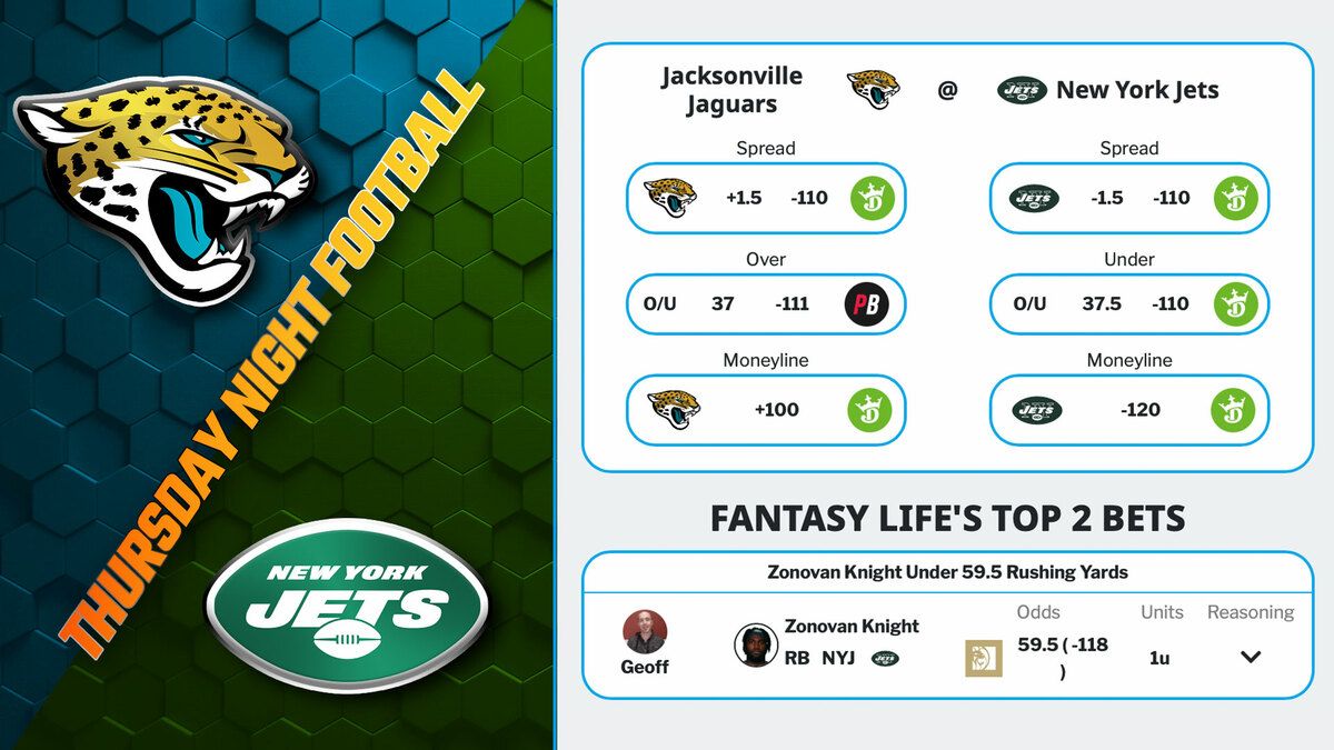 Knight’s projected for a smaller volume role this week in the Fantasy Life projections, which has him going for under 11.0 rush attempts against a Jaguars defense that also held the Cowboys' rush game to under 4.0 yards per carry. Given the matchup and some injury concerns that popped up with Knight last week, this is a line I could see shrinking as we get closer to game time.