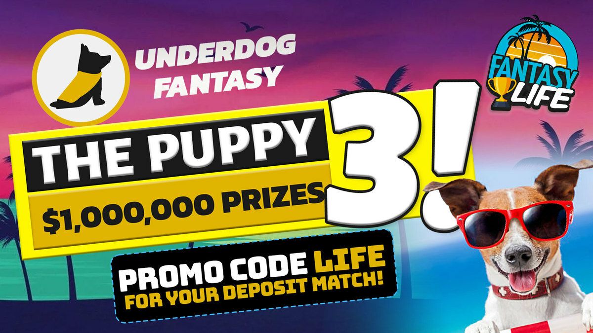 Best of all, new users get up to a $100 deposit match on Underdog with promo code LIFE. Hop in now, we'll see you in the Puppy 3 lobby:I'll also be drafting a Puppy 3 team on stream with KendallĀ this Tuesday at 4 pm ET if you'd like to watch us talk through strategy in real-time.Ā