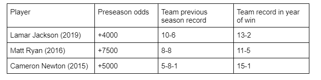 Last season, Patrick Mahomes won his second MVP and there is a massive likelihood that a QBs wins this award again in 2023-24. As of now, the betting market doesnāt have a single player who is not a QB with odds smaller than +10000.Ā