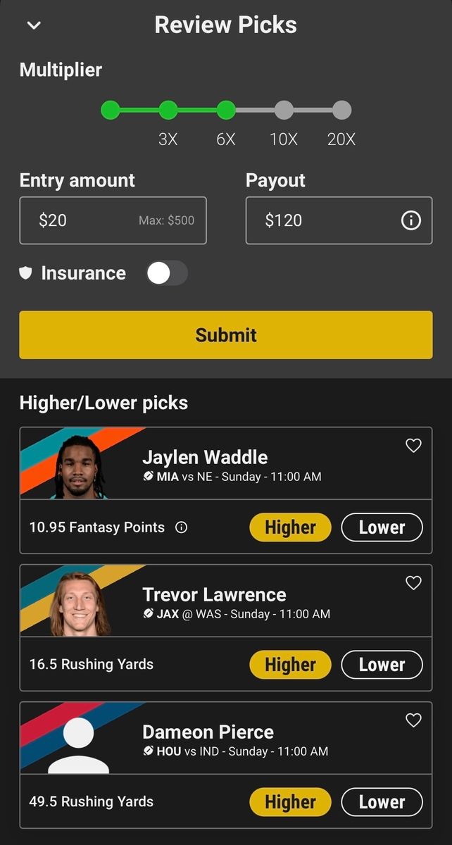 All you need to do is pick between 2 and 5 players to fill out your Pick’em slip, get every pick right, and take home some cold hard cash. Use the code LIFE and get your first deposit doubled up to $100 by Underdog!
