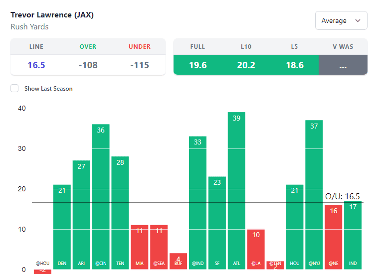 - Trevor Lawrence Over 16.5 Rushing Yards
