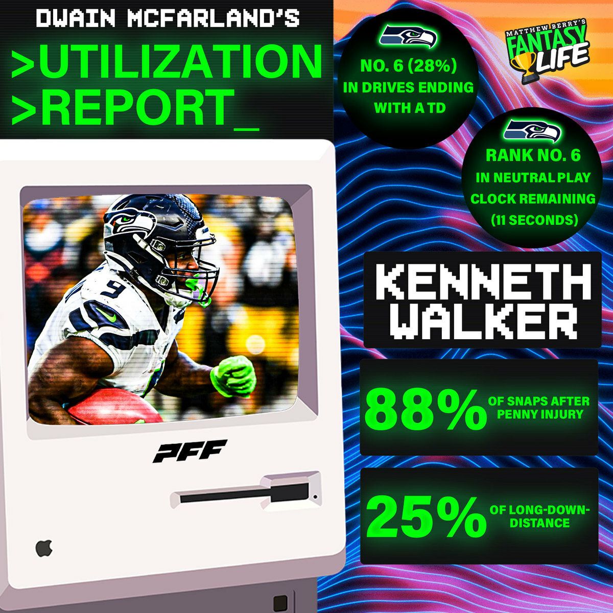 With Rashaad Penny out for the season, the rookie will immediately step into a role similar to Dameon Pierce as the early-down back. After Penny left the game in Week 5, Walker handled 88% of the snaps and 100% of the rushing attempts. He also played one of three LDD snaps.