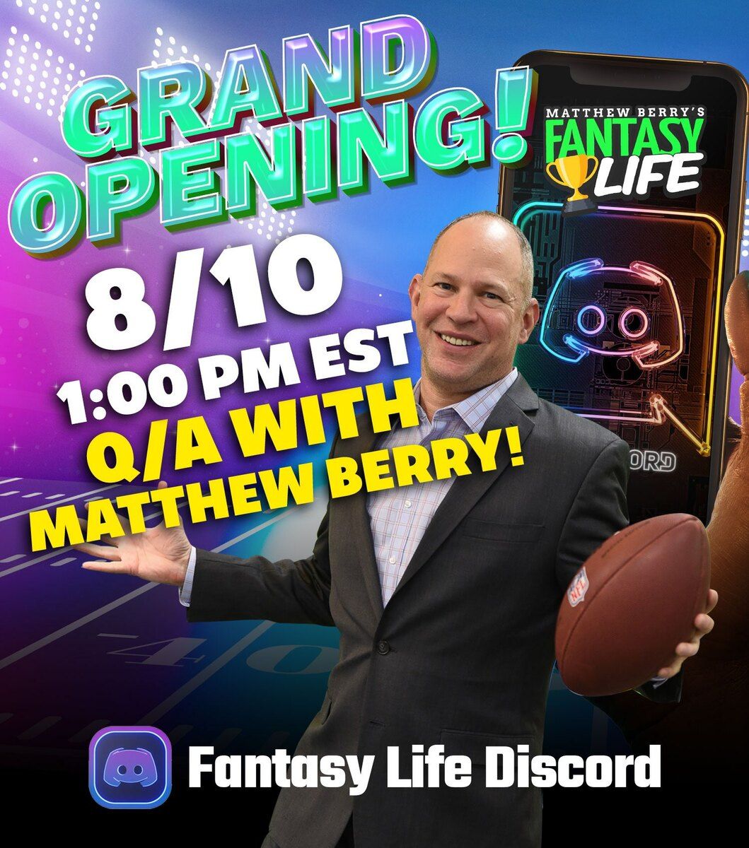 Don’t forget to join us and Matthew Berry TODAY at 1pm EST for an exclusive event in our Discord community! (Rescheduled from 11am ET)