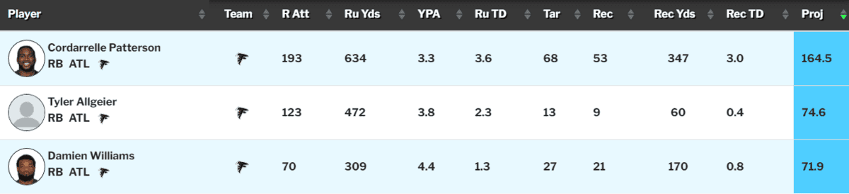 - The Falcons RB depth chart is a comedic bit