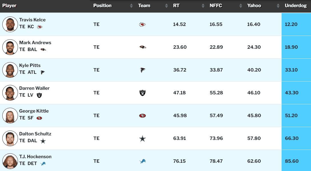 - TE Travis Kelce (Underdog ADP 12.1, TE1)