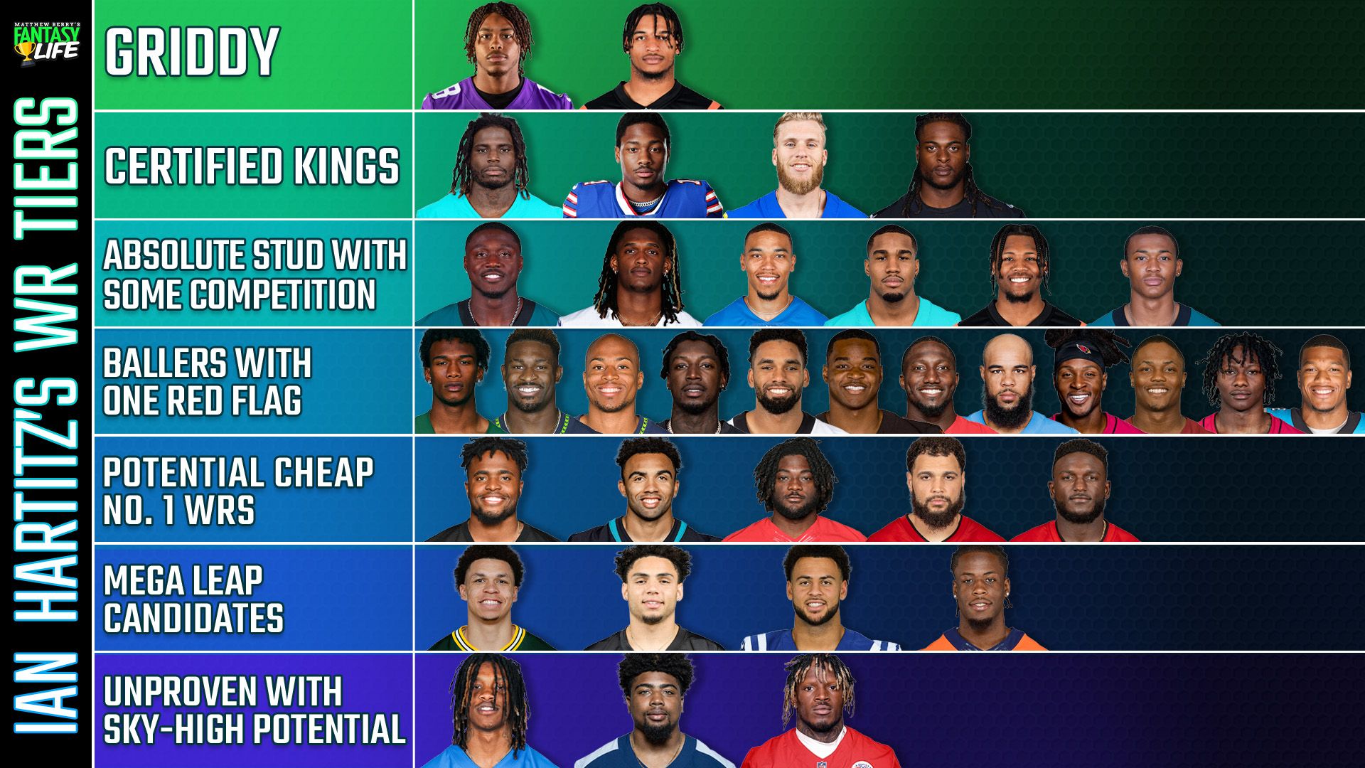 Ian Hartitz ranks fantasy-relevant WRs for the 2023 season, breaking them into tiers and providing ADP and key info about what to expect from each player.