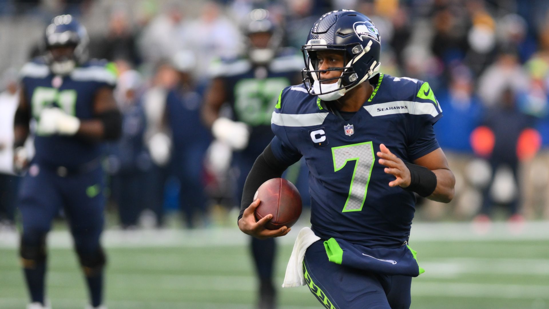 Dec 31, 2023; Seattle, Washington, USA; Seattle Seahawks quarterback Geno Smith (7) carries the ball against the Pittsburgh Steelers during the second half at Lumen Field. Mandatory Credit: Steven Bisig-USA TODAY Sports
