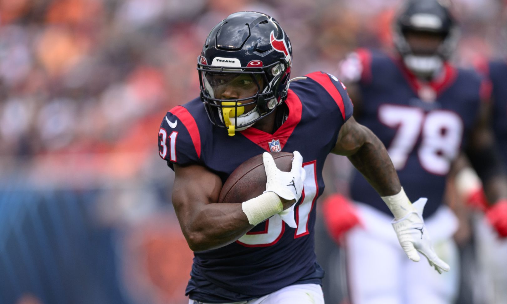 Sep 25, 2022; Chicago, Illinois, USA; Houston Texans running back Dameon Pierce (31) runs the ball in the second quarter against the Chicago Bears at Soldier Field. Mandatory Credit: Daniel Bartel-USA TODAY Sports