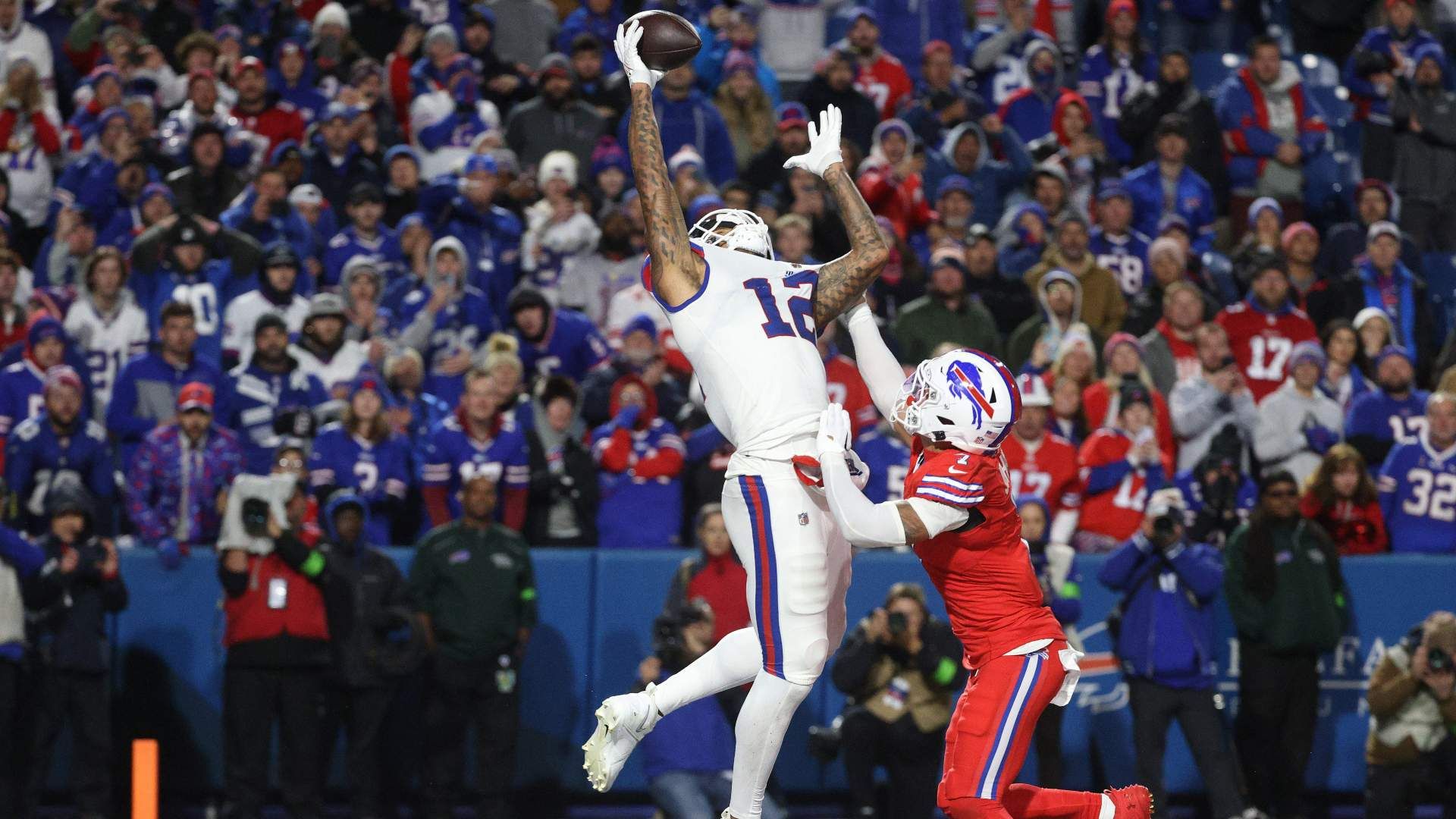 New York Giants tight end Darren Waller (12) goes up over Buffalo Bills cornerback TAron Johnson (7) but can t make the catch on the last play of the game the would have won the game for New York. Instead the Bills held on to win 14-9 Photo Credit: Jamie Germano/Rochester Democrat and Chronicle / USA TODAY NETWORK