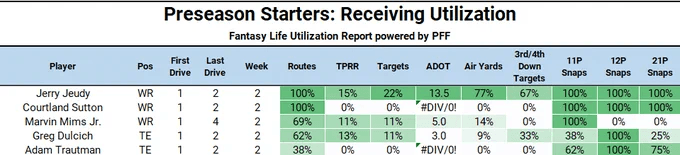 The Utilization Report. Preseason Week 2 Fantasy Takeaways.