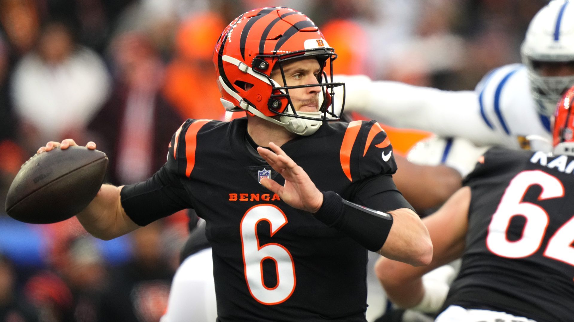 Cincinnati Bengals quarterback Jake Browning (6) throws in the second quarter during a Week 14 NFL game between the Indianapolis Colts and the Cincinnati Bengals, Sunday, Dec. 10, 2023, at Paycor Stadium in Cincinnati.