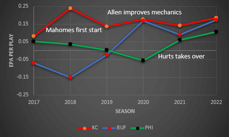 That said, EPA doesn’t doesn't stay constant year over year, as it will change based on personnel and staff as each NFL team evolves. The last five years highlight a few catalysts.